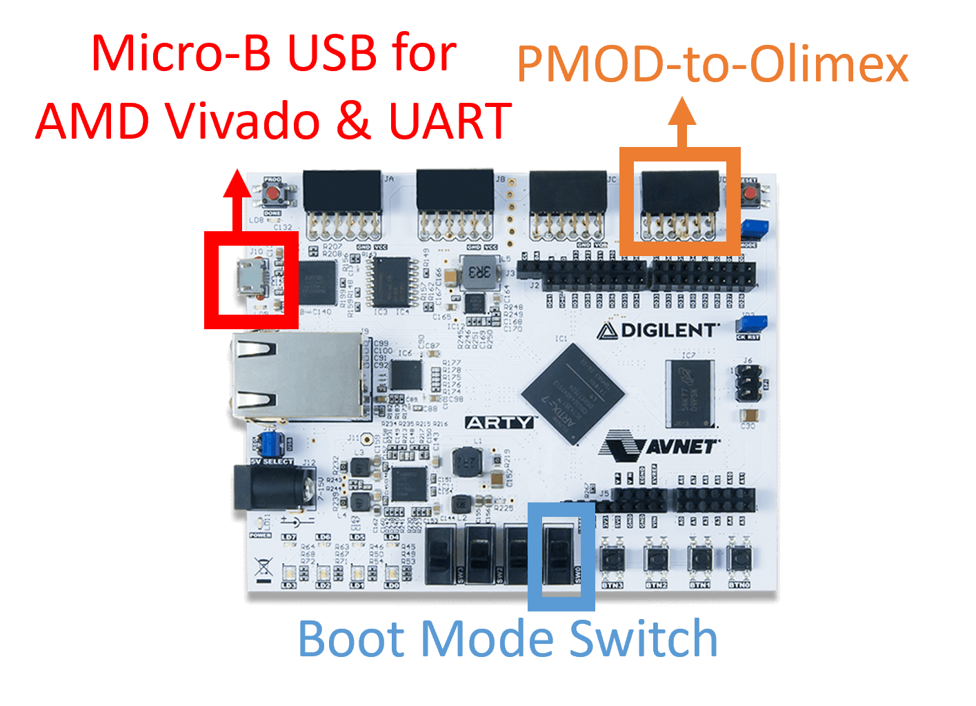 PMOD port should be connected to your computer for RVX JTAG communication via the Olimex module (See PMOD-to-Olimex section).